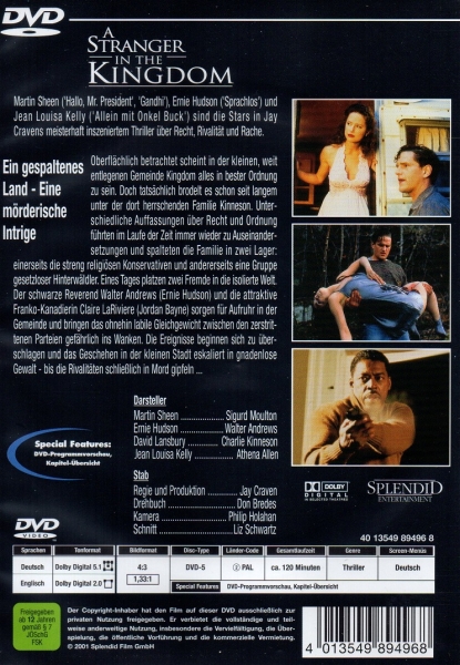 Oberflächlich betrachtet scheint in der kleinen, weit entlegenen Gemeinde Kingdom alles in bester Ordnung zu sein. Doch tatsächlich brodelt es schon seit langem unter der dort herrschenden Familie Kinneson. Unterschiedliche Auffassungen über Recht und Ordnung führten im Laufe der Zeit immer wieder zu Auseinandersetzungen und spalteten die Familie in zwei Lager: einerseits die streng religiösen Konservativen und andererseits eine Gruppe gesetzloser Hinterwäldler. Eine Tages platzen zwei Fremde in die isolierte Welt. Der schwarze Reverend Walter Andrews und die attraktive Franko-Kanadierin Claire LaRiviere sorgen für Aufruhr in der Gemeinde und bringen das ohnehin labile Gleichgewicht zwischen den zerstrittenen Parteien gefährlich ins Wanken. Die Ereignisse beginnen sich zu überschlagen und das Geschehen in der kleinen Stadt eskaliert in gnadenlose Gewalt - bis die Rivalitäten schließlich in Mord gipfeln...