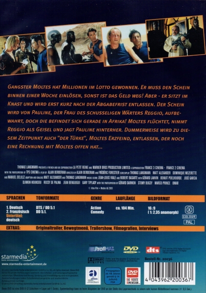 Gangster Moltes hat Millionen im Lotto gewonnen. Er muss den Schein binnen einer Woche einlösen, sonst ist das Geld weg! Aber - er sitzt im Knast und wird erst kurz nach der Abgabefrist entlassen. Der Schein wird von Pauline, der Frau des schusseligen Wärters Reggio, aufbewahrt, doch die befindet sich gerade in Afrika! Moltes flüchtet, nimmt Reggio als Geisel und jagt Pauline hinterher. Dummerweise wird zu diesem Zeitpunkt auch "der Türke", Moltes Erzfeind, entlassen, der noch eine Rechnung mit Moltes offen hat...