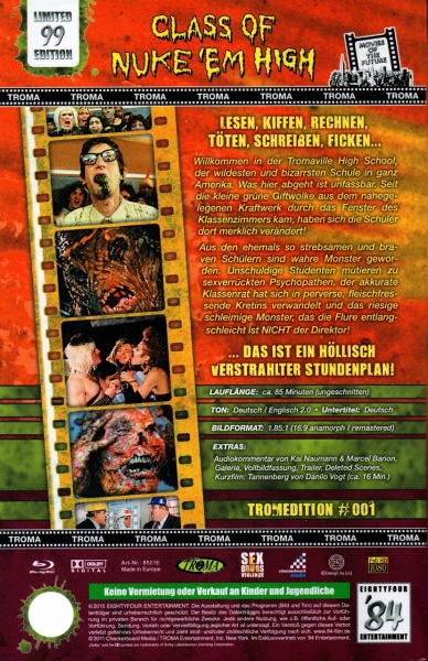 Willkommen in der Tromaville High School, der wildesten und bizarrsten Schule in ganz Amerika. Was hier abgeht ist unfassbar. Seit die kleine grüne Giftwolke aus dem nahegelegenen Kraftwerk durch das Fenster des Klassenzimmers kam, haben sich die Schüler dort merklich verändert! Aus den ehemals so strebsamen und braven Schülern sind wahre Monster geworden. Unschuldige Studenten mutieren zu sexverrückten Psychopathen, der akkurate Klassenrat hat sich in perverse, fleischfressende Kretins verwandelt und das riesige schleimige Monster, das die Flure entlangschleicht ist NICHT der Direktor!