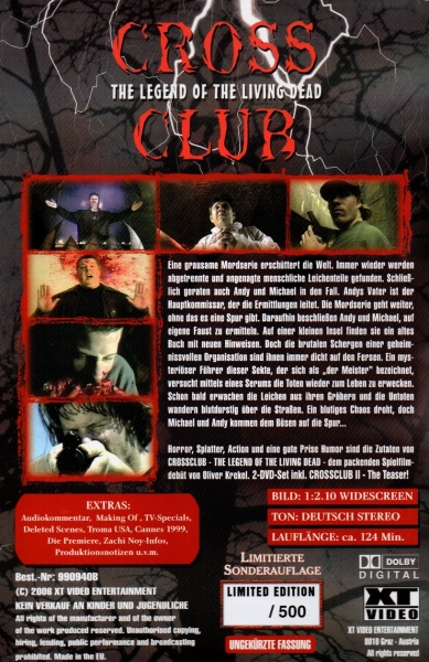 Horror, Splatter, Action und eine gute Prise Humor sind die Zutaten von CROSSCLUB - THE LEGEND OF THE LIVING DEAD - dem packenden Spielfilmdebüt von Oliver Krekel. 2-DVD-Set inkl. CROSSCLUB II - The Teaser!