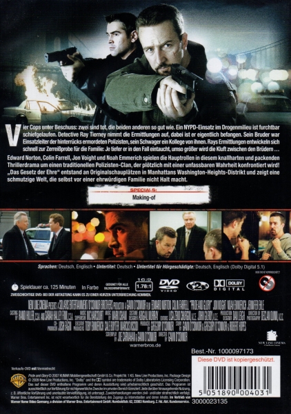 Das Gesetz der Ehre ist ein unverblümtes und bewegendes Portrait einer Polizistenfamilie, die sich auf beiden Seiten eines sich zuspitzenden Korruptionsskandals im New York City Police Department wiederfindet. Vier New Yorker Polizisten werden bei einem Hinterhalt getötet, der das gesamte Department in Alarm versetzt. Da dem Mörder die Flucht gelingt und der Druck der Öffentlichkeit steigt, bittet Detective Francis Tierney senior Detective Ray Tierney die Ermittlungen zu leiten. Zögernd übernimmt Ray den Fall, wissend, dass die getöteten Polizisten unter seinem Bruder Francis Tierney junior und an der Seite seines Schwagers Jimmy Egan gearbeitet haben. Auf den ersten Blick scheint es, als wäre ein Routinedrogeneinsatz schief gelaufen und fehlgeschlagen. Doch als Ray tiefer in die Ermittlungen eintaucht, wird ihm klar, dass der Dealer gewarnt wurde, von wem auch immer. Jemand aus den eigenen Reihen...