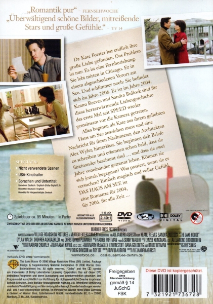 Alles beginnt, als Kate aus ihrem geliebten Haus am See ausziehen muss und eine Nachricht für ihren Nachmieter, den Architekten Alex Wyler, hinterlässt. Sie beginnen sich Briefe zu schreiben und erkennen schon bald, dass sie füreinander bestimmt sind... und dass sie zwei Jahre voneinander getrennt leben. Können sie sich jemals begegnen? Was passiert, wenn sie es versuchen? Einfach magisch und voller Gefühl, DAS HAUS AM SEE ist eine Romanze für 2004, für 2006, für alle Zeit...
