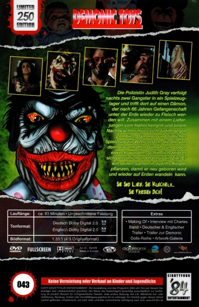 Die Polizistin Judith Gray verfolgt nachts zwei Gangster in ein Spielzeuglager und trifft dort auf einen Dämon, der nach 66 Jahren Gefangenschaft unter der Erde wieder zu Fleisch werden will. Zusammen mit einem Lieferjungen vom Hähnchengrill und einem Nachtwächter muss sich Judith gegen Zombies, Dämonen und tödliches Spielzeug zur Wehr setzen, die alle von dem Dämon zu grauenhaftem Leben erweckt wurden. Schließlich zeigt er sich persönlich und hat nur ein Ziel: Er will seinen Samen in Judith's Körper pflanzen, damit er neu geboren werden kann.