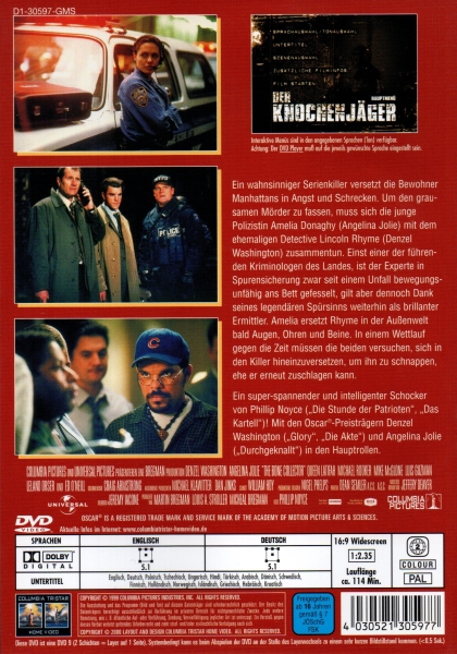 Die DVD enthält den spannenden Film in bester Bild- und Tonqualität sowie Bonusmaterial wie Interviews mit den Schauspielern und dem Regisseur, Hinter-den-Kulissen-Aufnahmen und Trailer. "Der Knochenjäger" ist ein fesselnder Thriller mit einer packenden Handlung, die den Zuschauer bis zum Schluss in Atem hält. Denzel Washington brilliert in seiner Rolle als genialer Ermittler trotz seiner körperlichen Einschränkungen. Ein Muss für Fans von spannenden Krimis und packenden Thrillern.