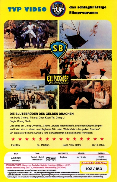 Das Ende der Ching-Dynastie...Chaos...brutale Machtkämpfe. Drei ebenbürtige Kämpfer verbinden sich zu einem unschlagbaren Trio - den "Blutsbrüdern des gelben Drachen". Ein explosiver Film mit Kung Fu- und Schwertkampf in beispielhafter Perfektion.