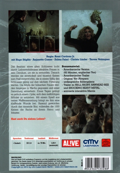 Der Besitzer eines alten Schlosses lockt durch Liebesverhältnisse attraktive Frauen in sein Gemäuer, um sie zu ermorden. Danach werden sie zerstückelt und tausend Katzen zum Fraß vorgeworfen, die in einem Käfig des Schlosses gierig auf ihre nächste Fütterung warten. Die Köpfe der hübschen Frauen werden hingegen in Wachs gegossen und einer Sammlung einverleibt. Eines Tages gelingt es jedoch einem Opfer, sich dem kaltblütigen Mörder zu entziehen. Mit einem Spieß aus seiner Waffensammlung bringt sie ihm eine klaffende Wunde bei. Rasend geworden durch das rinnende Blut, vollenden die 1000 Katzen die Rache an ihrem Herrn und Meister.