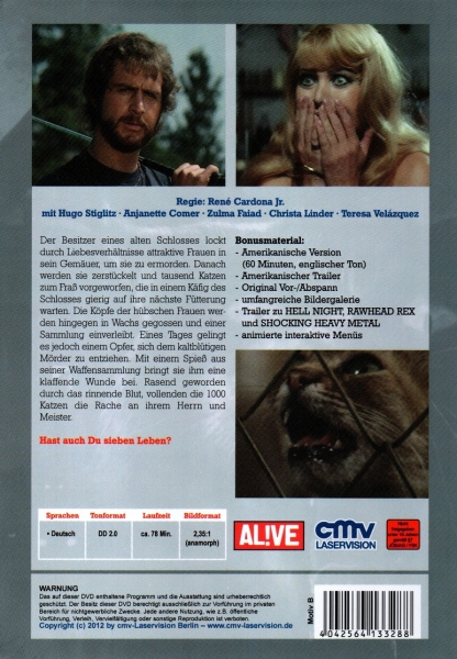 Der Besitzer eines alten Schlosses lockt durch Liebesverhältnisse attraktive Frauen in sein Gemäuer, um sie zu ermorden. Danach werden sie zerstückelt und tausend Katzen zum Fraß vorgeworfen, die in einem Käfig des Schlosses gierig auf ihre nächste Fütterung warten. Die Köpfe der hübschen Frauen werden hingegen in Wachs gegossen und einer Sammlung einverleibt. Eines Tages gelingt es jedoch einem Opfer, sich dem kaltblütigen Mörder zu entziehen. Mit einem Spieß aus seiner Waffensammlung bringt sie ihm eine klaffende Wunde bei. Rasend geworden durch das rinnende Blut, vollenden die 1000 Katzen die Rache an ihrem Herrn und Meister.