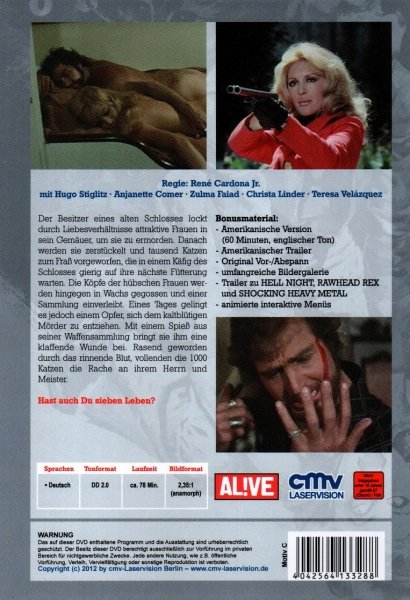 Der Besitzer eines alten Schlosses lockt durch Liebesverhältnisse attraktive Frauen in sein Gemäuer, um sie zu ermorden. Danach werden sie zerstückelt und tausend Katzen zum Fraß vorgeworfen, die in einem Käfig des Schlosses gierig auf ihre nächste Fütterung warten. Die Köpfe der hübschen Frauen werden hingegen in Wachs gegossen und einer Sammlung einverleibt. Eines Tages gelingt es jedoch einem Opfer, sich dem kaltblütigen Mörder zu entziehen. Mit einem Spieß aus seiner Waffensammlung bringt sie ihm eine klaffende Wunde bei. Rasend geworden durch das rinnende Blut, vollenden die 1000 Katzen die Rache an ihrem Herrn und Meister.