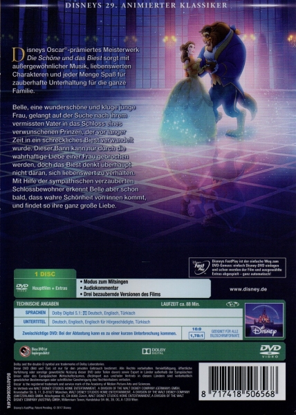 Belle, eine wunderschöne und kluge junge Frau, gelangt auf der Suche nach ihrem vermissten Vater in das Schloss eines verwunschenen Prinzen, der vor langer Zeit in ein schreckliches Biest verwandelt wurde. Dieser Bann kann nur durch die wahrhaftige Liebe einer Frau gebrochen werden, doch das Biest denkt überhaupt nicht daran, sich liebenswert zu mverhalten. Mit Hilfe der sympathischen, verzauberten Schlossbewohner, erkennt Belle aber schon bald, dass wahre Schönheit von innen kommt und findet so ihre ganz große Liebe