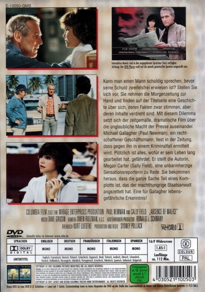 Kann man einen Mann schuldig sprechen, bevor seine Schuld zweifelsfrei erwiesen ist? Stellen Sie sich vor, Sie nehmen die Morgenzeitung zur Hand und finden auf der Titelseite eine Geschichte über sich, deren Fakten zwar stimmen, aber deren Inhalte verdreht sind. Mit diesem Dilemma setzt sich der zeitgemäße, dramatische Film über die unglaubliche Macht der Presse auseinander. Michael Gallagher, ein rechtschaffener Geschäftsmann, liest in der Zeitung, dass gegen ihn in einem Kriminalfall ermittelt wird. Plötzlich ist alles, wofür er sein Leben lang gearbeitet hat, gefährdet. Er stellt die Autorin, Megan Carter, eine unbarmherzige Sensationsreporterin, zur Rede. Sie bekommen heraus, dass die ganze Sache Teil eines Komplottes ist, das der machthungrige Staatsanwalt angezettelt hat. Eine für Gallagher lebensgefährliche Erkenntnis.