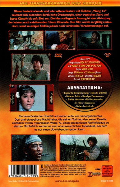 Dieser beeindruckende und sehr seltene Eastern mit Kultstar ,,Wang Yu" zeichnet sich besonders durch hohe Dramaturgie, einer tragischen Story und harte Kämpfe bis aufs Blut aus. Die hier vorliegende Fassung ist eine Abtastung der letzten noch existierenden 35mm Kinorolle. Der Film wurde sorgfältig restauriert, weist an einigen Stellen jedoch noch vereinzelte Verschmutzungen auf.