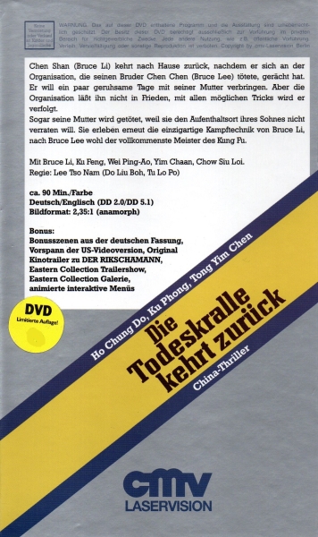 Chen Shan kehrt nach Hause zurück, nachdem er sich an ser Organisation, die seinen Bruder Chen Chen tötete gerächt hat. Er will ein paar geruhsame Tage mit seiner Mutter verbringen. Aber die Organisation läßt ihn nicht in Frieden, mit allen möglichen Tricks wird er verfolgt. Sogar seine Mutter wird getötet, weil sie den Aufenthaltsort ihres Sohnes nicht verraten will. Sie erleben erneut die einzigartige Kampftechnik von Bruce Li, nach Bruce Lee wohl der vollkommenste Meister des Kung Fu.