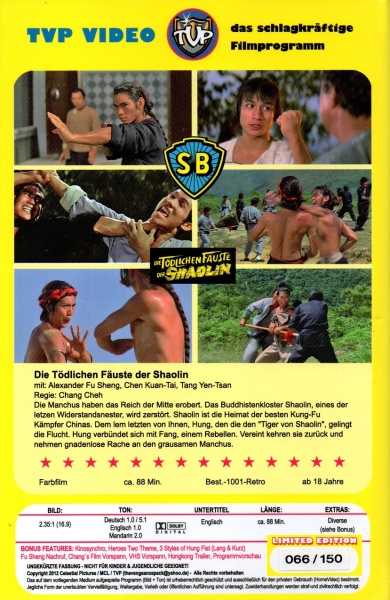 Die Manchus haben das Reich der Mitte erobert. Das Buddhistenkloster Shaolin, eines der letzen Widerstandsnester, wird zerstört. Shaolin ist die Heimat der besten Kung-Fu Kämpfer Chinas. Dem lem letzten von Ihnen, Hung, den die den "Tiger von Shaolin", gelingt die Flucht. Hung verbündet sich mit Fang, einem Rebellen. Vereint kehren sie zurück und nehmen gnadenlose Rache an den grausamen Manchus.