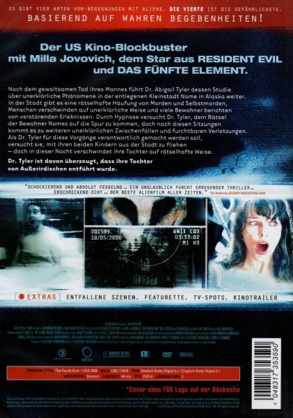In einer Kleinstadt in Alaska erforscht die Psychologin Abbey Tyler nach dem furchtbaren Tod ihres Mannes die Häufung seltsamer Schlafstörungen bei den Einwohnern. Dabei tritt Erschreckendes zu Tage: Zwei Männer erinnern sich zunächst nur an eine Eule; unter Hypnose berichten sie dann aber von einer furchtbaren Begegnung der vierten Art mit Außerirdischen, die das Schlimmste seien, was man sich vorstellen könne. Einer der Patienten bringt anschließend seine Kinder, seine Frau und sich selbst um. Als ein anderer Patient gelähmt wird, stellt der misstrauische Sheriff August Abbey unter Arrest. Diese findet zusammen mit dem Kollegen Abel Campus und dem Sprachwissenschaftler Awolowa Odusami heraus, dass auch sie selber schon Opfer einer Ufo-Entführung geworden ist.