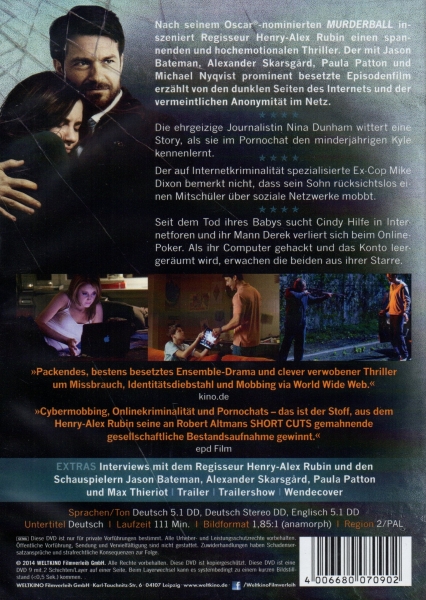 Drei Geschichten schicksalshaft miteinander verbunden: Die ehrgeizige Journalistin Nina Dunham wittert eine Story, als sie im Pornochat den minderjährigen Kyle kennenlernt. Der auf Internetkriminalität spezialisierte Ex-Cop Mike Dixon bemerkt nicht, dass sein Sohn rücksichtslos einen Mitschüler über soziale Netzwerke mobbt. Und seit dem Tod ihres Babys sucht Cindy Hilfe in Internetforen und ihr Mann Derek verliert sich beim Online-Poker. Als ihr Computer gehackt und das Konto leergeräumt wird, erwachen die beiden aus ihrer Starre.