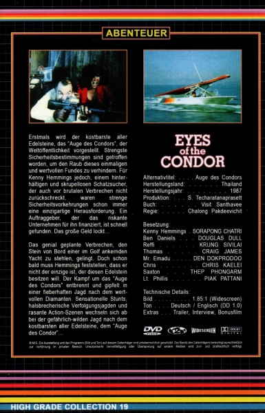 Erstmals wird der kostbarste aller Edelsteine, das "Auge des Condors", der Weltöffentlichkeit vorgestellt. Strengste Sicherheitsvorkehrungen sind getroffen worden, um den Raub dieses einmaligen und wertvollen Fundes zu verhindern. Für Kenny Hemmings jedoch, einem hinterhältigen und skrupellosen Schatzsucher, der auch vor brutalsten Verbrechen nicht zurückschreckt, waren strenge Sicherheitsvorkehrungen schon immer eine einzigartige Herausforderung. Ein Auftraggeber, der das riskante Unternehmen für ihn finanziert, ist schnell gefunden. Das große Geld lockt...