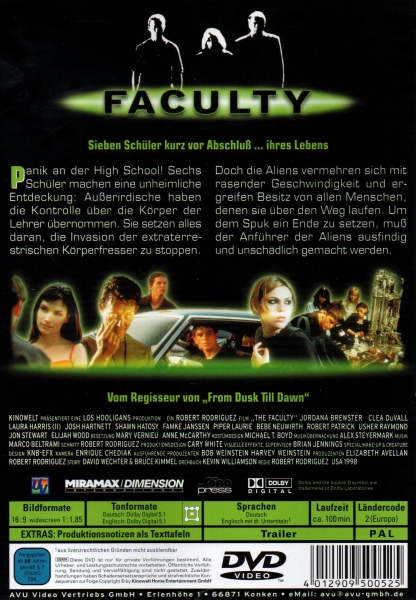 "Faculty - Trau keinem Lehrer" ist ein Science-Fiction-Horrorfilm aus dem Jahr 1998, der von Robert Rodriguez inszeniert wurde. Die Handlung spielt an einer High School in Ohio, wo plötzlich seltsame Dinge passieren. Eine Gruppe von Schülern, darunter Casey (gespielt von Elijah Wood), Delilah (gespielt von Jordana Brewster) und Zeke (gespielt von Josh Hartnett), entdecken, dass ihre Lehrer von Aliens übernommen wurden.