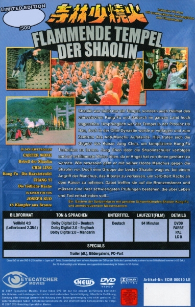 Shaolin war nicht nur ein Tempel, sondern auch Heimat des chinesischen Kung-Fu und dadurch im ganzen Land hoch angesehen. Ursprünglich war der Tempel in der Provinz Ho Nan, doch in der Chin-Dynastie wurde er verlagert und zum Zentrum des Anti-Manchu Aufstands. Hier trafen sich die Gegner des Kaiser Jung Chen, um komplizierte Kung-Fu Techniken zu lernen. Jung Chen lässt die Shaolinschüler verfolgen und auf schlimmste Weise töten, da er Angst hat von ihnen gestürzt zu werden. Wie besessen geht er mit seiner Horde Manchus gegen die Shaolin vor. Doch eine Gruppe der besten Shaolin wagt es, bei einem Angriff der Manchus, das Kloster zu verlassen, um verbittert Rache an dem Kaiser zu nehmen. Dabei treffen sie auf die Bronzemänner und müssen eine ihrer schwierigsten Prüfungen bestehen, die über Leben und Tod entscheiden soll...