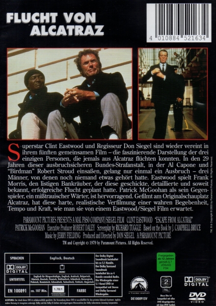 Superstar Clint Eastwood und Regisseur Don Siegel sind zum fünften Male ein Team in diesem faszinierenden Bericht über die einzigen drei Männer, die je aus dem berühmt-sicheren Gefängnis von Alcatraz entfliehen konnten. In 29 Jahren konnten die scheinbar unüberwindlichen Zuchthausmauern - in denen Al Capone und der "Vogelmensch" Robert Stroud einsaßen - nur ein einziges Mal durchbrochen werden - durch drei Männer, von denen nie wieder etwas gehört wurde. Eastwood spielt den verschlagenen Bankräuber Frank Morris, der den Fluchtplan meisterlich entwarf und - soweit man weiß - höchst erfolgreich durchführte. Patrick McGoohan ist ein vorzüglicher Gegenpart als Wächter.