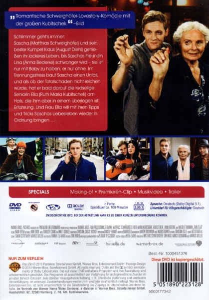 "Frau Ella" ist eine berührende und humorvolle Geschichte über Freundschaft, Veränderung und die Bedeutung des Lebens. Matthias Schweighöfer brilliert in seiner Rolle als einfühlsamer Musiker, der durch die Begegnung mit Frau Ella eine neue Perspektive auf sein eigenes Leben gewinnt. Der Film besticht durch seine charmanten Charaktere, witzigen Dialoge und emotionale Momente und ist ein absolutes Muss für alle Fans von deutschen Komödien.