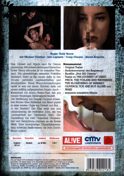 Sex, Gewalt und Macht sind für Dennis untrennbar. Dennis, ein junger homosexueller Mann aus einer amerikanischen Kleinstadt, hat am Sex keine Freude mehr. Nach zahllosen Affären ist ihm der gewisse erotische Kick abhanden gekommen. In seiner Fantasie findet er ihn wieder - in Form düsterer, sadomasochistischer Visionen in denen der gewaltsame Tod des Partners den ekstatischen Höhepunkt darstellt. Dennis begibt sich in die Schwulenmetropole San Francisco, wo er auf die Verwirklichung seiner Fantasien hofft und bald einem mordlustigen Pärchen begegnet, das seine abartigen Vorlieben zu teilen scheint...