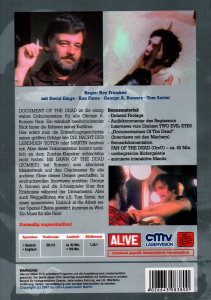 Document of the Dead ist eine Dokumentation, die den Zuschauer Einblick hinter den Kulissen von Romero-Filmen wie Night of the Living Dead, Dawn of the Dead, Martin und Der Affe im Menschen gewährt. Es werden ferner die Probleme von unabhängigen Filmemachern wie Romero beleuchtet, die sich vor allem um Geldbeschaffung, Zensur und Rechteverwertung drehen.