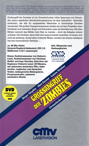 Großangriff der Zombies ist ein Gruselschocker voller Spannung und Grauen. Aus einem staatlichen Atomforschungszentrum ist eine radioaktive Gaswolke entwichen, die alle ihr ausgesetzten Menschen in blutrünstige Zombies verwandelt. Mit großen Transportmaschinen landen sie auf dem Flughafen einer Großstadt und verbreiten Angst und Schrecken unter der Bevölkerung. Mit allen Mitteln versucht das Militär, ihrer Herr zu werden - doch die Aufgabe scheint unlösbar: Die Zombies, deren Zahl sich rasend schnell vergröBert, erweisen sich nicht als geistlose, dumpf dahin trottende Wesen, sondern als ebenso intelligent wie ihre menschlichen Verfolger..