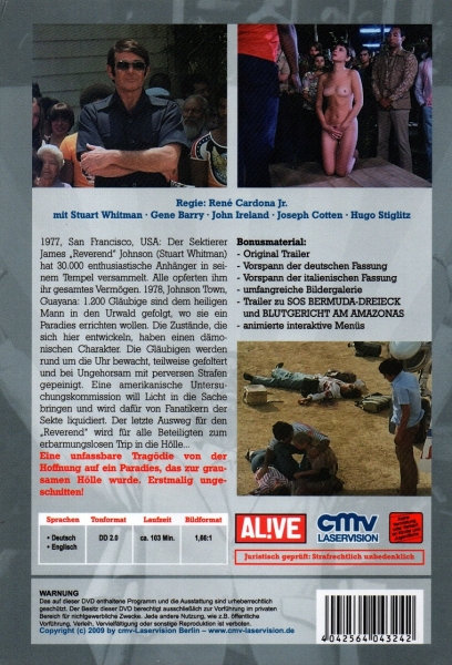1977, San Francisco, USA: der Sektierer James 'Reverend' Johnson (Stuart Whitman) hat 30.000 enthusiastische Anhänger in seinem Tempel versammelt. Alle opferten ihm ihr gesamtes Vermögen. 1978, Johnson Town, Guayana: 1.200 Gläubige sind dem heiligen Mann in den Urwald gefolgt, wo sie ein Paradies errichten wollen. Die Zustände, die sich hier entwickeln, haben einen dämonischen Charakter. Die Gläubigen werden rund um die Uhr bewacht, teilweise gefoltert und bei Ungehorsam mit perversen Strafen gepeinigt. Eine amerikanische Untersuchungskommission will Licht in die ganze Sache bringen und wird dafür von Fanatikern der Sekte liquidiert. Der letzte Ausweg für den 'Reverend', seinem Ende zu entgehen, wird für alle Beteiligten zum erbarmungslosen Trip in die Hölle...
