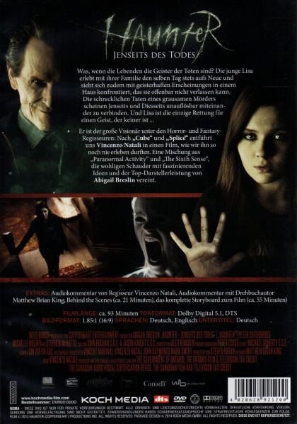 Er ist der große Visionär unter den Horror- und Fantasy- Regisseuren: Nach,,Cube“ und „Splice" entführt uns Vincenzo Natali in einen Film, wie wir ihn so noch nie erleben durften. Eine Mischung aus „Paranormal Activity" und „,The Sixth Sense", die wohligen Schauder mit faszinierenden Ideen und der Top-Darstellerleistung von Abigail Breslin vereint.