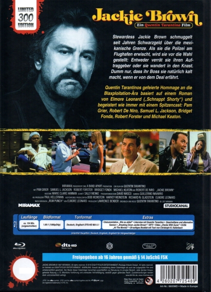 Quentin Tarantinos gefeierte Hommage an die Blaxploitation-Ära basiert auf einem Roman von Elmore Leonard (,,Schnappt Shorty") und begeistert wie immer mit einem Spitzencast: Pam Grier, Robert De Niro, Samuel L. Jackson, Bridget Fonda, Robert Forster und Michael Keaton.