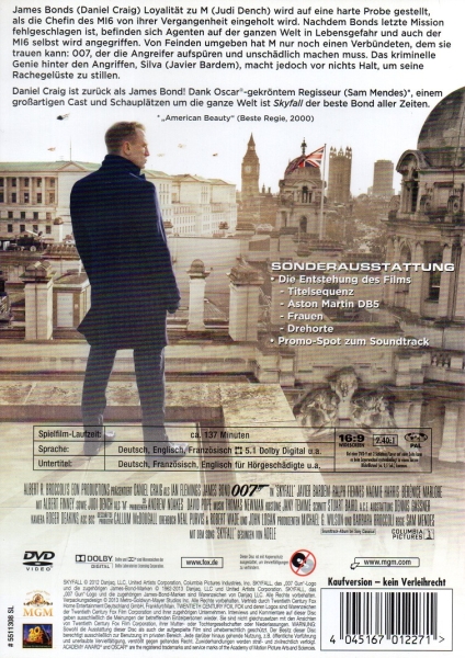 James Bonds (Daniel Craig) Loyalität zu M (Judi Dench) wird auf eine harte Probe gestellt, als die Chefin des MI6 von ihrer Vergangenheit eingeholt wird. Nachdem Bonds letzte Mission fehlgeschlagen ist, befinden sich Agenten auf der ganzen Welt in Lebensgefahr und auch der MI6 selbst wird angegriffen. Von Feinden umgeben hat M nur noch einen Verbündeten, dem sie trauen kann: 007, der die Angreifer aufspüren und unschädlich machen muss. Das kriminelle Genie hinter den Angriffen, Silva (Javier Bardem), macht jedoch vor nichts Halt um seine Rachegelüste zu stillen.