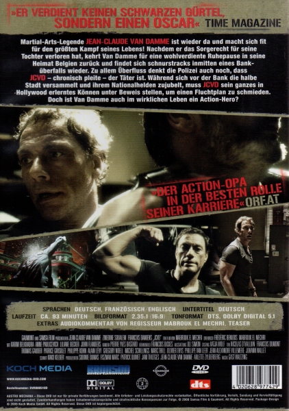 Martial-Arts-Legende JEAN-CLAUDE VAN DAMME ist wieder da und macht sich fit für den größten Kampf seines Lebens! Nachdem er das Sorgerecht für seine Tochter verloren hat, kehrt Van Damme für eine wohlverdiente Ruhepause in seine Heimat Belgien zurück und findet sich schnurstracks inmitten eines Banküberfalls wieder. Zu allem Überfluss denkt die Polizei auch noch, dass JCVD - chronisch pleite - der Täter ist. Während sich vor der Bank die halbe Stadt versammelt und ihrem Nationalhelden zujubelt, muss JCVD sein ganzes in Hollywood erlerntes Können unter Beweis stellen, um einen Fluchtplan zu schmieden. Doch ist Van Damme auch im wirklichen Leben ein Action-Hero?