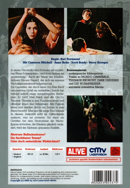 Der Make-Up-Künstler Vincent Renard (Cameron Mitchell) will eigentlich die schöne Marie (Anne Helm) ehelichen, doch auf einer Party schüttet ihm der fiese Produzent Max Black (Berry Kroeger) hochprozentigen Alkohol ins Gesicht, der sich an einer Zigarette entzündet. Renard geht in Flammen auf und ist fortan entstellt. Rachedurstig verschwindet er und taucht als Kurator des Hollywood-Wachsfigurenmuseums wieder auf, welches auch einige Statuen von Darstellern enthält, die kürzlich verschwunden sind und für Black gearbeitet hatten. Tatsächlich hat Renard die Darsteller alle entführt und mit Wachs überzogen, allerdings leben sie noch, da sie unter Einfluss eines Hypnoseserums stehen. Doch leider hat die Polizei ausgerechnet Renard als Informationsquelle bei der Suche ausgemacht...