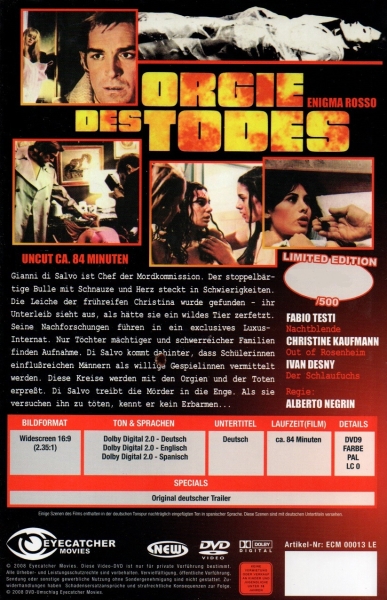 Gianni di Salvo ist Chef der Mordkommission. Der stoppelbärtige Bulle mit Schnauze und Herz steckt in Schwierigkeiten. Die Leiche der frühreifen Christina wurde gefunden - ihr 1500 Unterleib sieht aus, als hätte sie ein wildes Tier zerfetzt. FABIO TESTU Seine Nachforschungen führen in ein exclusives Luxus- Nachtblende Internat. Nur Töchter mächtiger und schwerreicher Familien CHRISTINE KAUFMANN finden Aufnahme. Di Salvo kommt dahinter, dass Schülerinnen Out of Rosenheim einflußreichen Männern als willige Gespielinnen vermittelt IVAN DESNY werden. Diese Kreise werden mit den Orgien und der Toten Der Schauruchs erpreßt. Di Salvo treibt die Mörder in die Enge. Als sie Regie: versuchen ihn zu töten, kennt er kein Erbarmen...