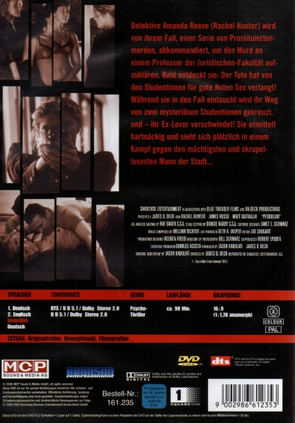 Detektive Amanda Reeve (Rachel Hunter) wird von ihrem Fall, einer Serie von Prostituiertenmorden, abkommandiert, um den Mord an einem Professor der Juristischen-Fakultät aufzuklären. Bald entdeckt sie: Der Tote hat von den Studentinnen für gute Noten Sex verlangt! Während sie in den Fall eintaucht wird ihr Weg von zwei mysteriösen Studentinnen gekreuzt, und - ihr Ex-Lover verschwindet! Sie ermittelt hartnäckig und sieht sich plötzlich in einem Kampf gegen den mächtigsten und skrupellosesten Mann der Stadt...