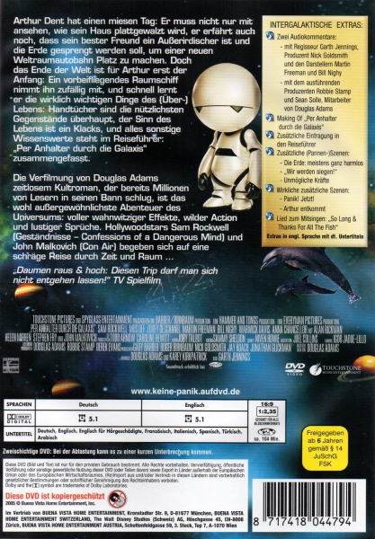 Die DVD "Per Anhalter durch die Galaxis" ist ein Muss für alle Science-Fiction-Fans und Liebhaber von skurrilen und humorvollen Geschichten. Tauchen Sie ein in die faszinierende Welt des Universums und erleben Sie ein Abenteuer, das Sie so schnell nicht vergessen werden.