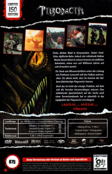 Tiefer, dichter Wald in Ost Anatolien, Türkei: friedliche, idyllische Ruhe. Jedoch, der schlafende Vulkan Mount Ararat hütet in seinem Inneren ein tödliches Geheimnis - etwas was seit Millionen Jahren auf sein Erwachen wartet. Zwei, von sehr unterschiedlichen Motiven angetriebene Expeditionen sind auf dem Weg in die Tiefe des Waldes. Eine Expedition von Wissenschaftlern, geführt von Prof. Lovecraft auf der Suche nach einer vor kurzem entstandenen Erdspalte, die Aufschlüsse über die Vorzeit erlauben könnte. Außerdem eine militärische Spezialeinheit geleitet von Captain Bergen auf der Jagd nach einem Terroristen und seinen Mitgliedern, deren Basis in der Nähe des Vulkans vermutet wird. Bereits nach kurzer Zeit werden beide Expeditionen zwangsweise zu einer Schicksalsgemeinschaft wenn sie diesen Ort lebend verlassen wollen, denn sie bedroht eine tödliche Gefahr, Pterodactyls, die seit der Urzeit ausgestorben schienen. Mit 5 Metern Spannweite, außergewöhnlichen Fertigkeiten und einem unbändigen Appetit angetrieben werden die Expeditionsmitglieder von den Flugechsen gejagt. Gibt es eine Chance der Urzeit zu entkommen...?