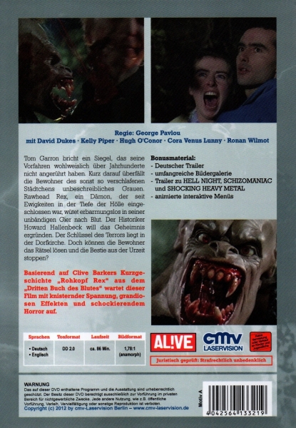 Zur gleichen Zeit läßt ein Farmer in der näheren Umgebung seinen Acker umgraben und gerät an einen riesenhaften Findling, der jedoch unter sich etwas einschließt, was nicht befreit werden sollte: nämlich genau das riesenhafte, grobschlächtige Monstrum, genannt Rawhead Rex. Dieses macht sich dann auch prompt auf eine Tour durch die Gegend und hinterläßt eine blutige Spur des Schreckens. Sowohl der ermittelnde Beamte Gilling, als auch die Kirchenmänner von Rathmore und die Hallenbecks können dem Schrecken nicht entkommen...
