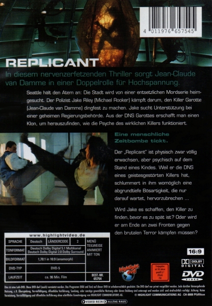 Der „Replicant“ ist physisch zwar völlig erwachsen, aber psychisch auf dem Stand eines Kindes. Weil er die DNS eines geistesgestörten Killers hat, schlummert in ihm womöglich eine abgrundtiefe Bösartigkeit, die nur darauf wartet, hervorzubrechen …