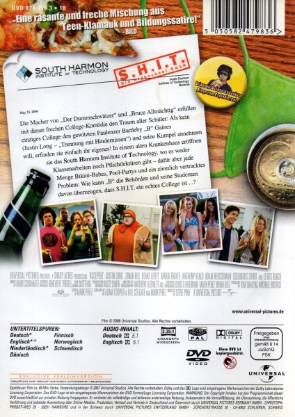 Die Macher von „Der Dummschwätzer“ und „Bruce Allmächtig“ erfüllen mit dieser frechen College-Komödie den Traum aller Schüler: Als kein einziges College den gewitzten Faulenzer Bartleby „B“ Gaines (Justin Long – „Trennung mit Hindernissen“) und seine Kumpel annehmen will, erfinden sie einfach ihr eigenes! In einem alten Krankenhaus eröffnen sie das South Hampton Institute of Technology, wo es weder Klassenarbeiten noch Pflichtlektüren gibt – dafür aber jede Menge Bikini-Babes, Pool-Partys und ein ziemlich vertracktes Problem: Wie kann „B“ die Behörden und seine Studenten davon überzeugen, dass S.H.I.T. ein echtes College ist ...?