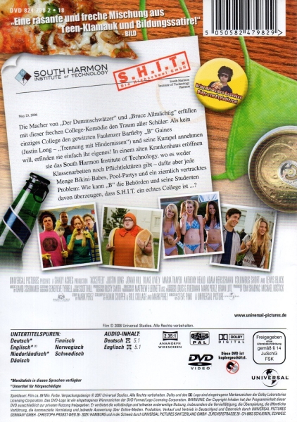 Die Macher von „Der Dummschwätzer“ und „Bruce Allmächtig“ erfüllen mit dieser frechen College-Komödie den Traum aller Schüler: Als kein einziges College den gewitzten Faulenzer Bartleby „B“ Gaines (Justin Long – „Trennung mit Hindernissen“) und seine Kumpel annehmen will, erfinden sie einfach ihr eigenes! In einem alten Krankenhaus eröffnen sie das South Hampton Institute of Technology, wo es weder Klassenarbeiten noch Pflichtlektüren gibt – dafür aber jede Menge Bikini-Babes, Pool-Partys und ein ziemlich vertracktes Problem: Wie kann „B“ die Behörden und seine Studenten davon überzeugen, dass S.H.I.T. ein echtes College ist ...?