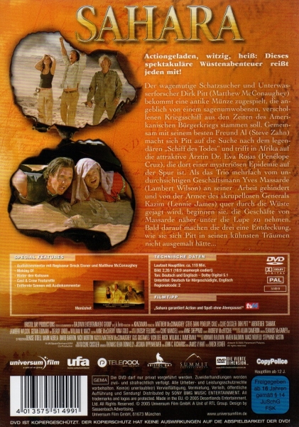 Der wagemutige Schatzsucher, Unterwasserforscher und Frauenschwarm Dirk Pitt bekommt eine antike Münze zugespielt, die angeblich von einem sagenumworbenen, verschollenen Kriegsschiff aus den Zeiten des Amerikanischen Bürgerkriegs stammen soll. Gemeinsam mit seinem besten Freund Al macht sich Pitt auf die Suche nach dem legendären "Schiff des Todes" und trifft in Afrika auf die attraktive Ärztin Dr. Eva Rojas, die dort einer mysteriösen Epidemie auf der Spur ist. Als das Trio mehrfach vom undurchsichtigen Geschäftsmann Yves Massarde an ihrer Arbeit gehindert und von der Armee des skrupellosen General Kazim quer durch die Wüste gejagt wird, beginnen sie, die Geschäfte von Massarde näher unter die Lupe zu nehmen. Daraufhin machen die drei eine Entdeckung, wie sie sich Pitt in seinen kühnsten Träumen nicht ausgemalt hätte...
