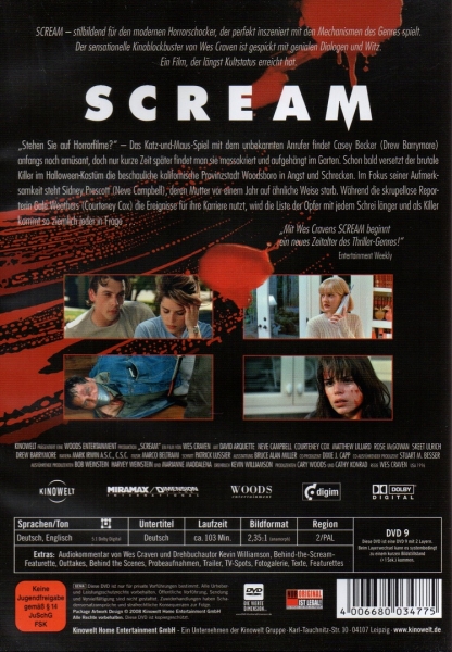 In der beschaulichen kalifornischen Kleinstadt Woodsboro erhält Casey Becker einen Anruf: "Stehen Sie auf Horrorfilme?" Zuerst findet Casey die Frage des unbekannten Anrufers noch lustig. Wenig später findet man sie massakriert und aufgehängt im Garten. Mitschülerin Sidney Prescott, deren Mutter vor einem Jahr auf ähnliche Weise starb, wird als nächste von dem gefährlichen Killer im Halloween-Kostüm heimgesucht, der bald die ganze Provinzstadt in Angst und Schrecken versetzt. Während die skrupellose Reporterin Gale Weathers einen Medienzirkus daraus macht, beteiligen sich neben dem Polizisten Dewey Riley auch Sidneys Freunde an dem mörderischen Suchspiel nach dem maskierten Killer...