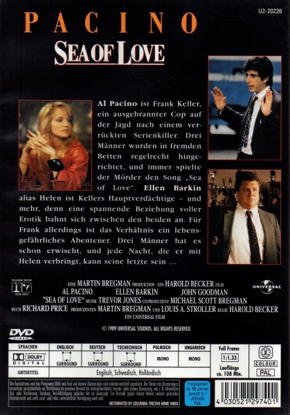 Frank Keller ein ausgebrannter Cop auf der Jagd nach einem verrückten Serienkiller. Drei Männer wurden in fremden Betten regelrecht hingerichtet, und immer spielte der Mörder den Song "Sea of Love". Ellen Barkin alias Helen ist Kellers Hauptverdächtige - und mehr, denn eine spannende Beziehung voller Erotik bahnt sich zwischen den beiden an. Für Frank allerdings ist das Verhältnis ein lebensgefährliches Abenteuer. Drei Männer hat es schon erwischt, und jede Nacht, die er mit Helen verbringt, kann seine letzte sein....
