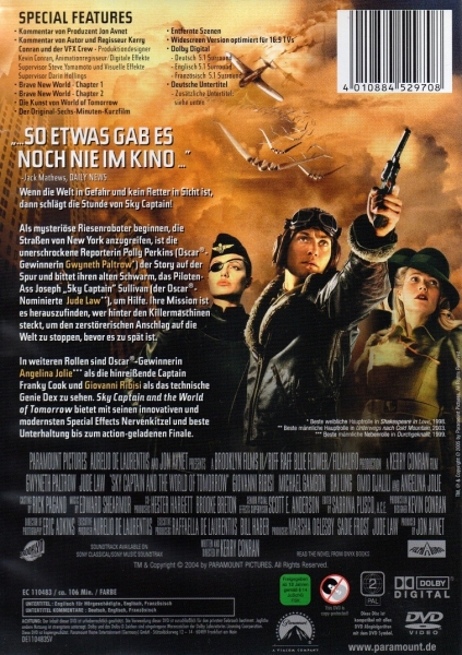Wenn die Welt in Gefahr und kein Retter in Sicht ist, dann schlägt die Stunde von Sky Captain! Als mysteriöse Riesenroboter beginnen, die Straßen von New York anzugreifen, ist die unerschrockene Reporterin Polly Perkins (Oscar®-Gewinnerin Gwyneth Paltrow) der Story auf der Spur und bittet ihren alten Schwarm, das Piloten-Ass Joseph "Sky Captain" Sullivan (der Oscar®-Nominierte Jude Law), um Hilfe. Ihre Mission ist es herauszufinden, wer hinter den Killermaschinen steckt, um den zerstörerischen Anschlag auf dieWelt zu stoppen, bevor es zu spät ist.