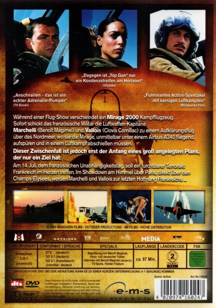 Während einer Flug-Show verschwindet ein Mirage 2000 Kampfflugzeug. Sofort schickt das französische Militär die Luftwaffenkapitäne Antoine Marchelli und Sebastien Vallois zu einem Aufklärungsflug über das Nordmeer, wo sie die Mirage, unmittelbar unter einem Airbus A340 fliegend, aufspüren. Als jedoch die 2000 Kampfbereitschaft signalisiert, erhalten Marchelli und Vallois den Befehl, die Verfolgung unverzüglich einzustellen. Aber es ist zu spät, die 2000 befindet sich bereits in Angriffsposition auf Vallois, Marchelli muss die Maschine abschießen, um seinen Flügelpartner zu retten. Dieser Zwischenfall ist jedoch erst der Anfang eines groß angelegten Plans, der nur ein Ziel hat: Am 14.Juli, dem französischen Unabhängigkeitstag, soll ein furchtbarer Terrorakt Frankreich im Herzen treffen. Im Showdown am Himmel über Paris, direkt über den Champs-Elysées, werden Marchelli und Vallois zur letzten Hoffnung Frankreichs...