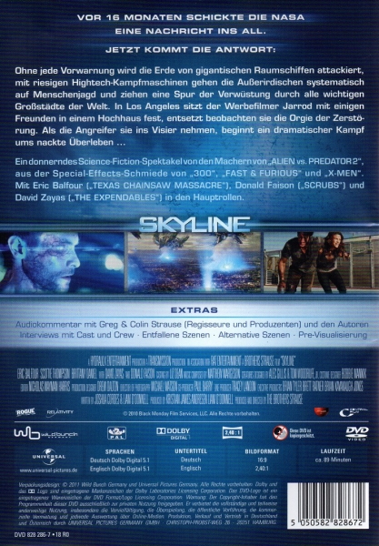 Ohne jede Vorwarnung wird die Erde von gigantischen Raumschiffen attackiert. Mit riesigen High-Tech-Kampfmaschinen gehen die Außerirdischen systematisch auf Menschenjagd und ziehen eine Spur der Verwüstung durch alle wichtigen Großstädte der Welt. In Los Angeles sitzt der Werbefilmer Jarrod mit einigen Freunden in einem Hochhaus fest - entsetzt beobachten sie die Orgie der Zerstörung. Als die Angreifer sie ins Visier nehmen, beginnt ein dramatischer Kampf ums nackte Überleben ...