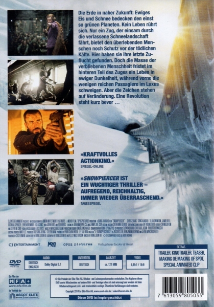 Die Erde in naher Zukunft: Ewiges Eis und Schnee bedecken den einst so grünen Planeten. Kein Leben rührt sich. Nur ein Zug, der einsam durch die verlassene Schneelandschaft fährt, bietet den überlebenden Menschen noch Schutz vor der tödlichen Kälte. Hier haben sie ihre letzte Zuflucht gefunden. Doch die Masse der verbliebenen Menschheit fristet im hinteren Teil des Zuges ein Leben in ewiger Dunkelheit, während vorne die wenigen reichen Passagiere im Luxus schwelgen. Aber die Zeichen stehen auf Veränderung. Eine Revolution steht kurz bevor …