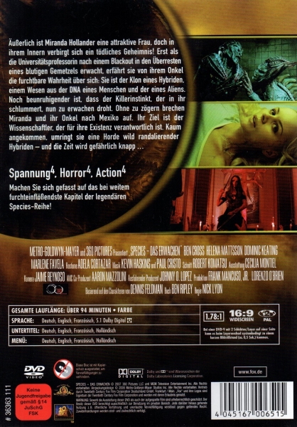 Äußerlich ist Miranda Hollander eine attraktine Frau, doch in ihrem Innern verbirgt sich ein tödliches Geheimnis! Erst als die Universitätsprofessorin nach einem Blackout in den Überresten eines blutigen Gemetzels erwacht, erfährt sie von ihrem Onkel die furchtbare Wahrheit über sich: Sie ist der Klon eines Hybriden, einem Wesen aus der DNA eines Menschen und der eines Aliens. Noch beunruhigender ist, dass der Killerinstinkt, der in ihr schlummert, nun zu erwachen droht. Ohne zu zögern brechen Miranda und ihr Onkel nach Mexiko auf. Ihr Ziel ist der Wissenschaftler, der für ihre Existenz verantwortlich ist. Kaum angekommen, umringt sie eine Horde wild randalierender Hybriden - und die Zeit wird gefährlich knapp...