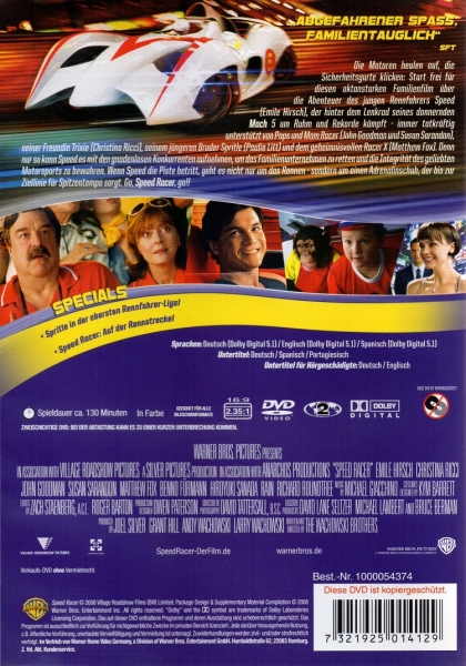 Die Motoren heulen auf, die Sicherheitsgurte klicken: Start frei für diesen oktanstarken Familienfilm über die Abenteuer des jungen Rennfahrers Speed, der hinter dem Lenkrad seines donnernden Mach 5 um Ruhm und Rekorde kämpft - immer tatkräftig unterstützt von Pops und Mom Racer, seiner Freundin Trixie, seinem jüngeren Bruder Spritle und dem geheimnisvollen Racer X. Denn nur so kann Speed es mit den gnadenlosen Konkurrenten aufnehmen, um das Familienunternehmen zu retten und die Integrität des geliebten Motorsports zu bewahren. Wenn Speed die Piste betritt, geht es nicht nur um das Rennen - sondern um einen Adrenalinschub, der bis zur Ziellinie für Spitzentempo sorgt...